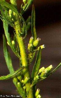 PIANTA ERBACEA ANNUA ALTA DA 50CM A 1,5M, GLABRA, CON ASSE FIORALE ERETTO E FUSTI CHE DIVENTANO BRUNO-ROSSASTRI VERSO LE INFIORESCENZE, RADICE FITTONANTE, FOGLIE OVATE 2-3 PENNATOSETTE, INFIORESCENZA A PANNOCCHIA TERMINALE COMPOSTA DA MOLTISSIMI CAPOLINI CON FIORI TUBULARI, FEMMINILI QUELLI PERIFERICI ED ERMAFRODITI QUELLI CENTRALI. I FRUTTI SONO ACHENI MARRONCINI DI CIRCA 5MM