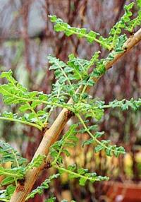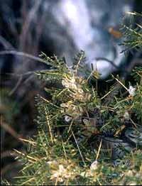 ARBUSTO NANO O SUFFRUTICE SEMPREVERDE, MOLTO RAMIFICATO E SPINOSO, ALTO FINO A 50 CM. I RAMI GIOVANI SONO PUBESCENTI E DIVENTANO LEGNOSI CON L'ETÀ, TERMINANDO SPESSO IN SPINE RIGIDE. LE FOGLIE SONO PICCOLE, ALTERNE, COMPOSTE IMPARIPENNATE CON 5-9 FOGLIOLINE OVALI O ELLITTICHE, DENTATE, DI COLORE VERDE GRIGIASTRO E SPESSO CADUCHE DURANTE LA STAGIONE SECCA. I FIORI SONO UNISESSUALI (PIANTA MONOICA), PICCOLI E VERDASTRI, RIUNITI IN SPIGHE GLOBOSE O OVALI ALL'ASCELLA DELLE FOGLIE. I FIORI MASCHILI HANNO NUMEROSI STAMI SPORGENTI, MENTRE I FIORI FEMMINILI HANNO UN OVARIO INFERO CON DUE STILI PIUMOSI. I FRUTTI SONO ACHENI SECCHI, INCLUSI NEL PERIANZIO PERSISTENTE E CARNOSO, FORMANDO UNA INFRUTTESCENZA GLOBOSA E SPINOSA. LA FIORITURA AVVIENE IN PRIMAVERA E I FRUTTI MATURANO IN ESTATE.