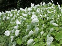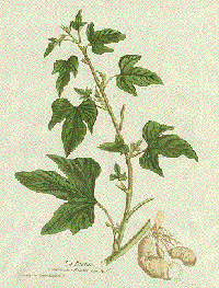 PIANTA ERBACEA PERENNE RAMPICANTE O STRISCIANTE, CON RADICI TUBEROSE RAMIFICATE E CARNOSE, DI COLORE MARRONE-ROSSASTRO. FUSTI CILINDRICI, SOTTILI E PUBESCENTI, LUNGHI FINO A 3 M. FOGLIE OPPOSTE, OVATO-LANCEOLATE (4-12 CM), APICE ACUMINATO, MARGINE INTERO, SUPERFICIE PUBESCENTE. INFIORESCENZE A PANNOCCHIA TERMINALE CON PICCOLI FIORI BIANCASTRI O VERDOGNOLI, PENTAMERI. FRUTTO PICCOLO, SECCO, INDEISCENTE, CONTENENTE UN UNICO SEME. RADICI EMETTONO UN CARATTERISTICO ODORE DOLCIASTRO. COLTIVATA PER LE PROPRIETÀ MEDICINALI DELLE RADICI, RICCHE DI FITOCOMPOSTI.