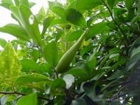 ALBERO ALTO FINO A 25M CON RAMOSCELLI PUBESCENTI. FOGLIE CON PICCIOLO DI 5-12CM ELLITTICHE O OVALI LEGGERMENTE ACUMINATE E BRATTEOLE PUBESCENTI. FIORI BIANCHI CON COROLLA BIANCO-VERDASTRA A 5 PETALI STRETTAMENTE OVALI E STAMI INSERITI NELLA COROLLA CON FILAMENTI MOLTO BREVI, PISTILLO DI CIRCA 1CM. PRODUCE BACCHE GLOBOSE DI 2-4CM ARANCIONI A MATURAZIONE.