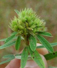 ERBACEA PERENNE ERETTA CON FUSTI SEMPLICI O RAMIFICATI PUBESCENTI ALTA FINO A 1 METRO. FOGLIE ALTERNE TRIFOGLIATE SESSILI O BREVEMENTE PICCIOLATE CON FOGLIOLINE LINEARI-OBLUNGHE O ELLITTICHE SERICEE. FIORI ERMAFRODITI PAPILIONACEI SESSILI O SUBSESSILI DENSAMENTE AGGREGATI IN CAPOLINI GLOBOSI ASCELLARI O TERMINALI. CALICE GAMOSEPALO CON CINQUE LACINIE STRETTE SERICEE PERSISTENTI. COROLLA PAPILIONACEA CON VESSILLO ERETTO PETALI LATERALI (ALI) E CARENA INCURVATA. ANDROCEO DIADELFO CON NOVE STAMI SALDATI E UNO LIBERO. GINECEO SUPERO MONOCARPELLARE CON STILO INCURVATO E STIGMA CAPITATO. FRUTTO LEGUME INDEISCENTE OVALE APPIATTITO MONOSPERMO INCLUSO NEL CALICE PERSISTENTE.
