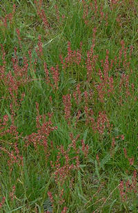 PIANTA ERBACEA PERENNE DIOICA CON FUSTO ERETTO ROSSASTRO E ALLUNGATO ALTO FINO A 50 CM E PICCOLE FOGLIE BASALI TRILOBATE SAGITTATE LANCEOLATE NEL LOBO ALLUNGATO. I FIORI GIALLI SONO PORTATI DAI MASCHI, QUELLI ROSSI DALLE FEMMINE CHE SI SVILUPPANO E MATURANO TRA GIUGNO E OTTOBRE IN ACHENI ROSSASTRI LUCIDI POSTI ALL'APICE DELLO STELO