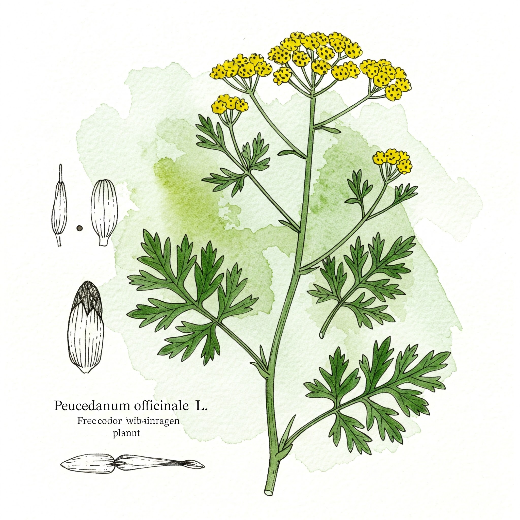 PIANTA ERBACEA PERENNE IMPONENTE CON UNA ROBUSTA RADICE A FITTONE E UN FUSTO ERETTO, CAVO E STRIATO CHE PUÒ RAGGIUNGERE GRANDI ALTEZZE. LE FOGLIE BASALI SONO GRANDI, PENNATOSETTE CON SEGMENTI FINEMENTE DIVISI E DENTATI, MENTRE LE FOGLIE CAULINE SONO PROGRESSIVAMENTE RIDOTTE. I FIORI SONO PICCOLI, GIALLI, NUMEROSI, RACCOLTI IN GRANDI E COMPLESSE OMBRELLE COMPOSTE. IL FRUTTO È UNA SCHIZOCARPO OBLUNGA, APPIATTITA, CON COSTE ALATE. LA PIANTA EMANA UN FORTE ODORE RESINOSO, SPECIALMENTE QUANDO VIENE DANNEGGIATA, A CAUSA DEL LATTICE GOMMOSO PRESENTE NEI CANALI SECRETORI.