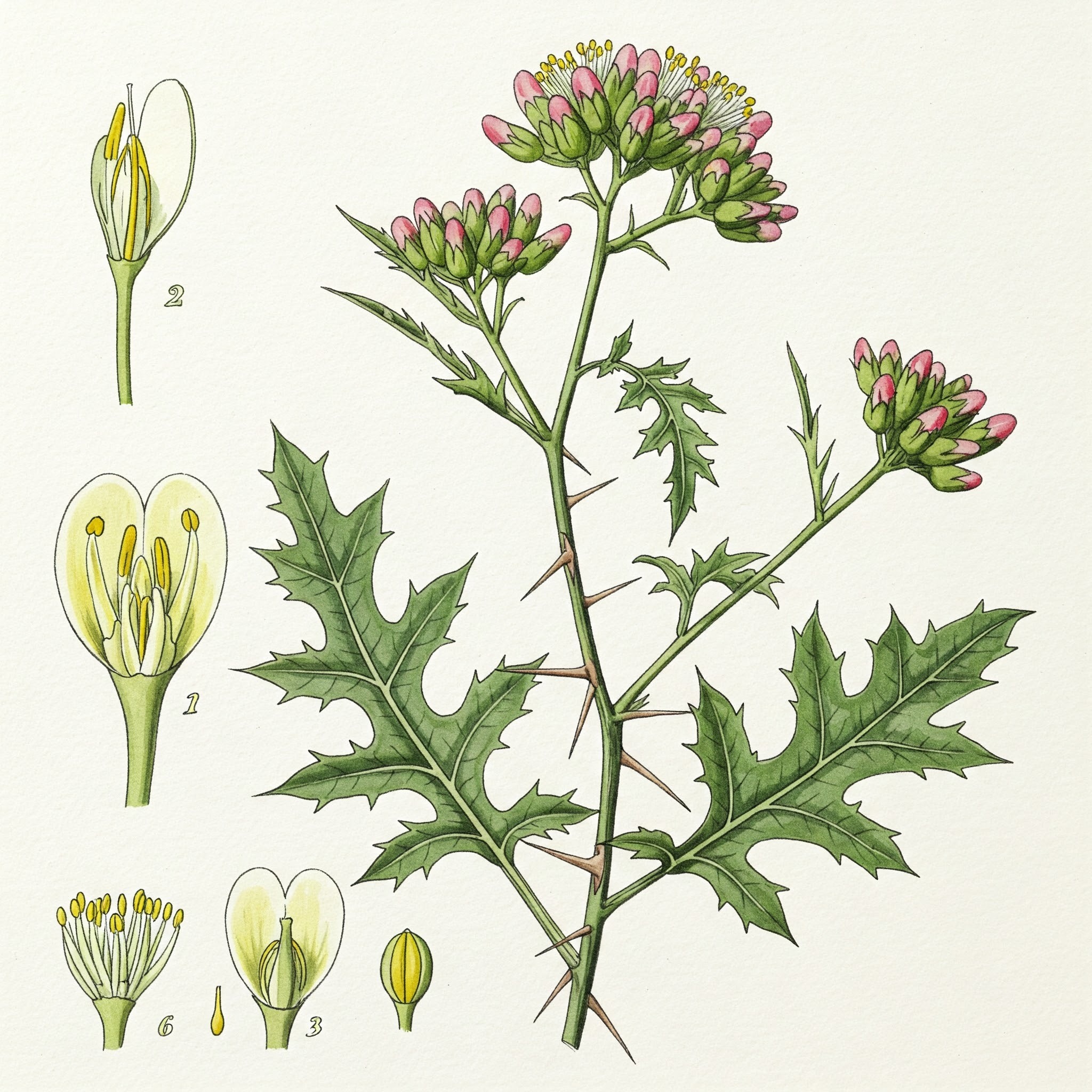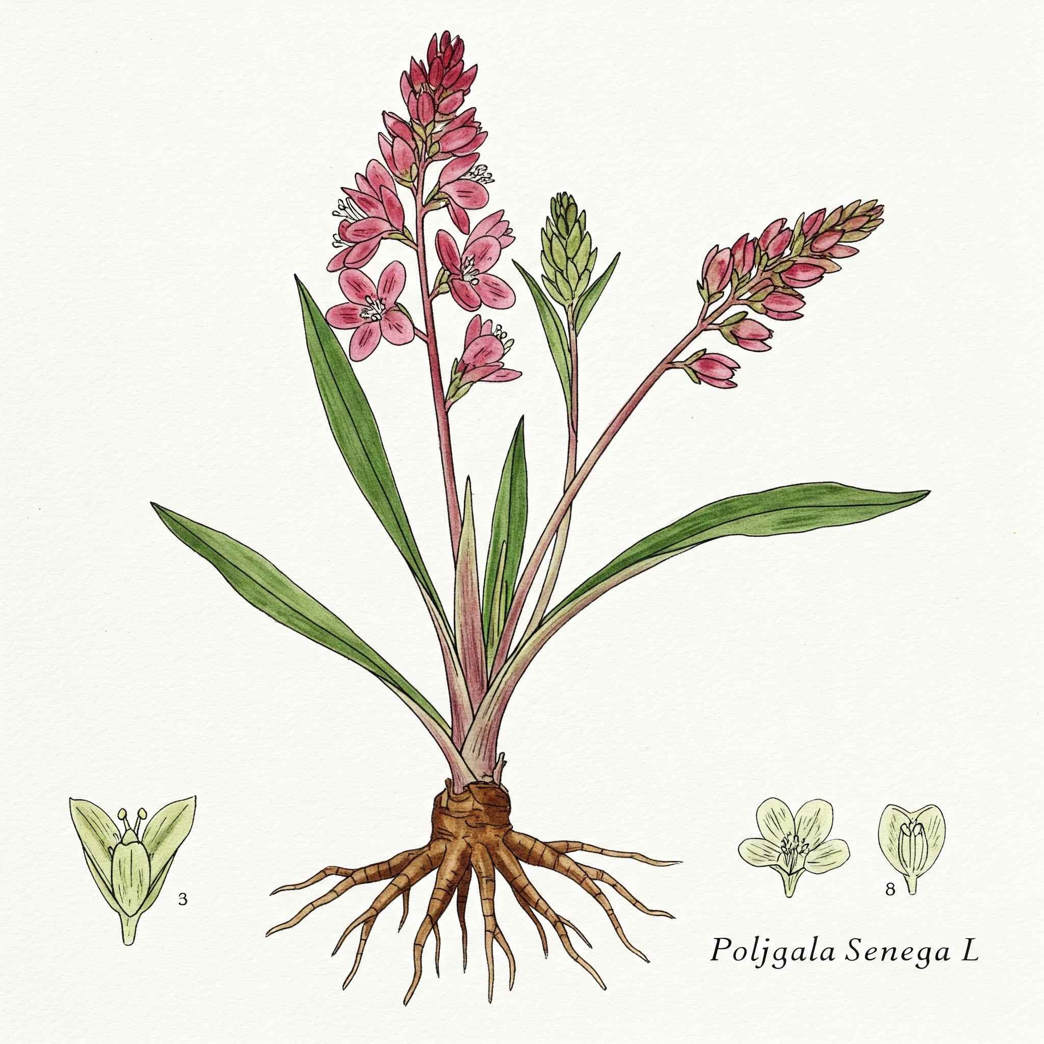 PIANTA ERBACEA PERENNE CON FUSTI ERETTI O ASCENDENTI, SEMPLICI O RAMIFICATI, CHE RAGGIUNGONO I 15-50 CM DI ALTEZZA. LE FOGLIE SONO ALTERNE, SESSILI O BREVEMENTE PICCIOLATE, LANCEOLATE O LINEARI-LANCEOLATE, CON MARGINI INTERI. I FIORI SONO PICCOLI, BIANCHI O VERDASTRI, RACCOLTI IN SPIGHE TERMINALI O ASCELLARI DENSE. IL CALICE È COMPOSTO DA 5 SEPALI, DI CUI 3 PICCOLI E 2 ALIFORMI (A FORMA DI ALA), PIÙ GRANDI E PETALOIDI. LA COROLLA È FORMATA DA 3 PETALI UNITI ALLA BASE, CON IL PETALO INFERIORE A FORMA DI CARENA E FIMBRIATO ALL'APICE. GLI STAMI SONO 8, UNITI ALLA BASE. L'OVARIO È SUPERO, BICARPELLARE, CON UNO STILO CURVO E UNO STIGMA CAPITATO. IL FRUTTO È UNA CAPSULA COMPRESSA, CONTENENTE DUE SEMI NERI E PUBESCENTI. LA RADICE È FUSIFORME E CONTORTA, DI COLORE GIALLASTRO O BRUNO.