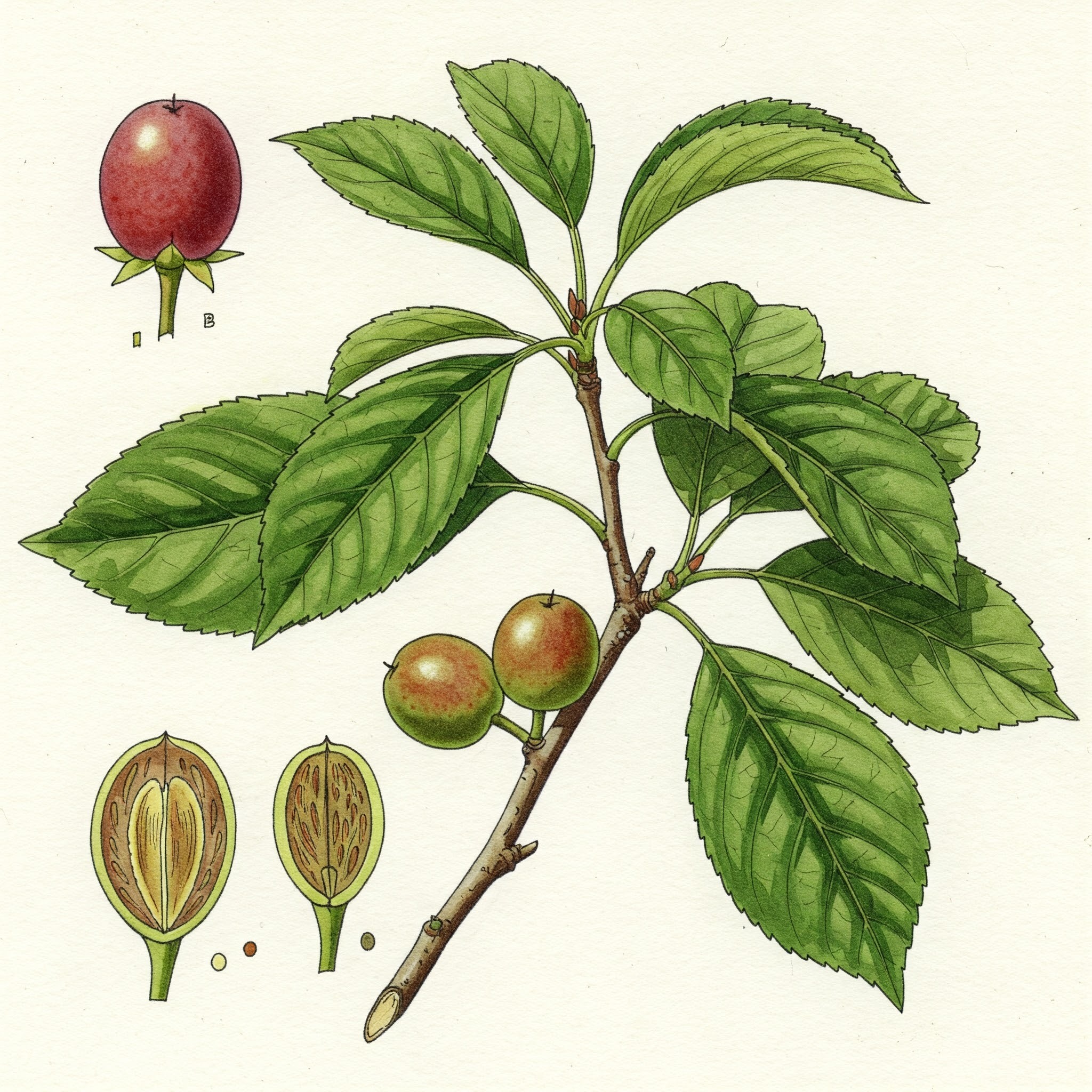 ALBERO DI MEDIE DIMENSIONI CON TRONCO ERETTO E RAMIFICAZIONE ESTESA. FOGLIE ALTERNE O SUB-OPPOSTE, OVATE O ELLITTICHE, CON PICCIOLO E MARGINE INTERO. FIORI PICCOLI, VERDASTRI O GIALLASTRI, RACCOLTI IN SPIGHE ASCELLARI O TERMINALI. FRUTTO DRUPA OVOIDE O ELLISSOIDALE, GLABRA, DI COLORE GIALLO-VERDASTRO CHE VIRA AL MARRONE SCURO A MATURAZIONE, CON UNA SINGOLA SEME DURA ALL'INTERNO.