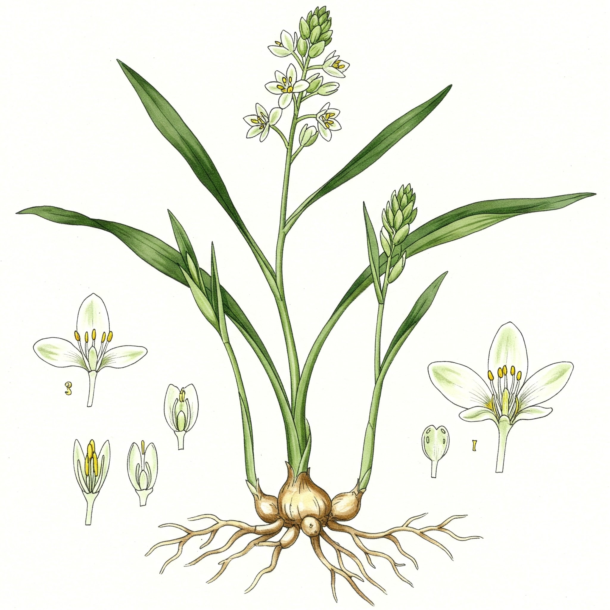 PIANTA ERBACEA PERENNE DIOICA CON UNA ROSETTA BASALE DI FOGLIE LANCEOLATE O SPATOLATE, LUNGHE FINO A 30 CM. DURANTE LA FIORITURA SVILUPPA UNO SCAPO ERETTO, GLABRO, CHE PUÒ RAGGIUNGERE 1-1.5 METRI DI ALTEZZA, PORTANTE UN RACEMO DENSO DI PICCOLI FIORI BIANCHI O VERDASTRI. I FIORI MASCHILI SONO PIÙ NUMEROSI E PENDULI, CON SEI TEPALI STRETTI E SEI STAMI VISTOSI. I FIORI FEMMINILI SONO MENO NUMEROSI, ERETTI, CON SEI TEPALI PIÙ LARGHI E OVARIO SUPERO CON TRE STILI. IL FRUTTO È UNA CAPSULA LOCULICIDA CONTENENTE NUMEROSI SEMI ALATI. LA PIANTA PRESENTA UNA RADICE RIZOMATOSA AMARA.