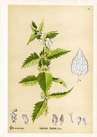 PIANTA ERBACEA PERENNE CON STOLONI SOTTERRANEI DAI QUALI SI SVILUPPANO FUSTI A SEZIONE QUADRATA TALVOLTA RAMIFICATI; FOGLIE OPPOSTE A DUE CON MARGINE IRREGOLARMENTE SEGHETTATO RICOPERTE DA PELURIA MORBIDA; FIORI CON COROLLA BIANCA RACCOLTI ALL'ASCELLA DELLE FOGLIE SUPERIORI; FRUTTI COMPOSTI DA QUATTRO ACHENI TRIANGOLARI